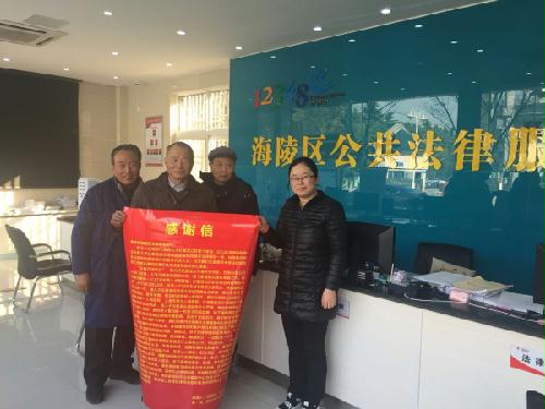 ? ? 2017年12月20日,受援对象纪某家人将一封热情洋溢的感谢信送到海陵区法律援助中心,衷心感谢法律援助中心和林文虎律师向其提供的无偿法律援助。 ? ? 2015年2月22日,年仅27岁的纪某步行与陈某驾驶的小型轿车发生交通事故,头部受伤严重,一只眼睛接近失明,医疗费用数额巨大。由于事故当天该路段雨天,公安交警部门无法认定事故责任,肇事方拒绝支付医疗费用,巨额的医疗费用让原本不富裕的家庭更是雪上加霜,年过半百的父母更是一夜白头。别无他法的纪某在父亲的陪同下来泰州市海陵区法律援助中心申请维权。接到申请后,海陵区法律援助中心认真接待和做出了详细的分析,采取分阶段援助的形式指派江苏恒乐律师事务所专门处理机动车事故责任纠纷的林文虎律师承办此案。第一阶段林律师先向海陵法院申请主张医疗费用,缓解纪某因治疗给家庭带来的压力。待受援人治疗全部结束后,林律师帮助纪某再次向法院主张伤残费和赔偿费,最终获赔48万元并已履行完毕。在没有公安交警部门出具的事故认定书的情况下,林律师帮助纪某成功维权,获得应有的赔偿款,令纪某及其家属感动不已。为表示感谢,受援人多次送现金给林文虎律师,都被拒绝。 ? ? 2017年以来,海陵区法律援助中心一直秉承“应援尽援,能援优援”的宗旨,为518名弱势群体提供了法律援助,帮助符合条件的特困受援对象申请国家救助金6万元,收到当事人赠送锦旗4面,书面感谢信1封,有效维护了弱势群体的合法权益,赢得人民群众的广泛赞誉,区、市、省级媒体进行了报道。